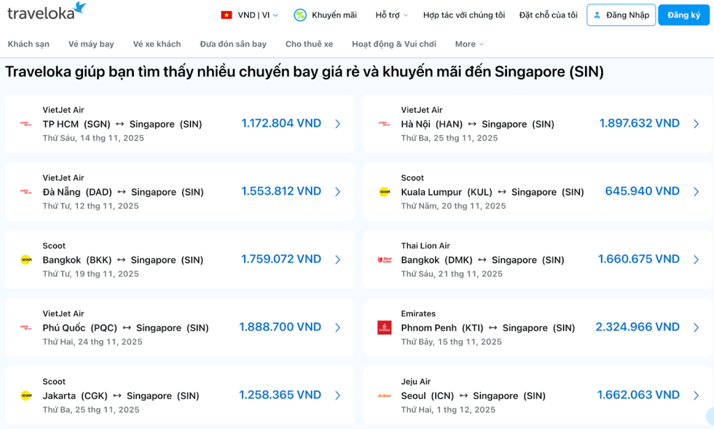 Nếu bạn tìm vé máy bay giá rẻ từ các thành phố lớn ở Việt Nam như Hà Nội, TP.HCM hay Đà Nẵng, việc so sánh các hãng hàng không nội địa và quốc tế sẽ giúp bạn chọn được chuyến bay phù hợp nhất. Traveloka là nền tảng hữu ích để tra cứu nhiều hãng cùng lúc, từ các hãng giá rẻ như Scoot, AirAsia đến các hãng quốc tế như Singapore Airlines, Jetstar, giúp bạn dễ dàng chọn hành trình tối ưu cả về giá lẫn thời gian.